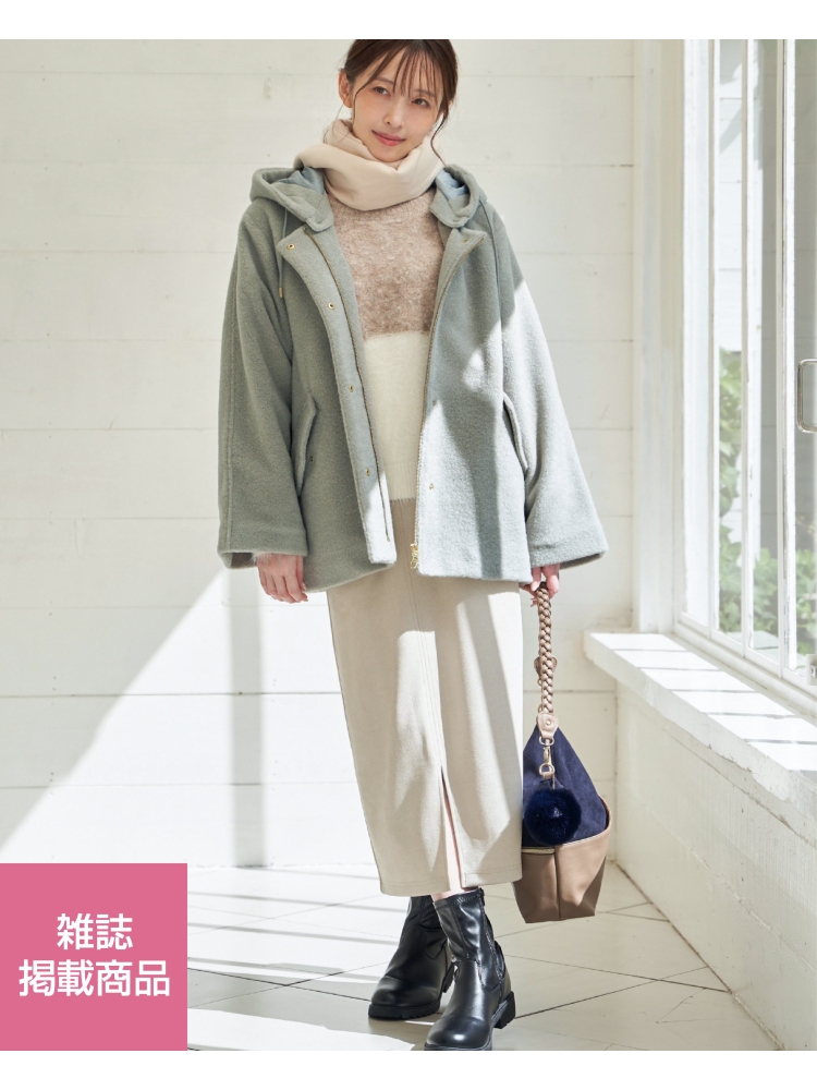 アウターはフードを外せばノーカラーコートにもなる2way仕様で、静電気が起きにくい裏地もポイントです!